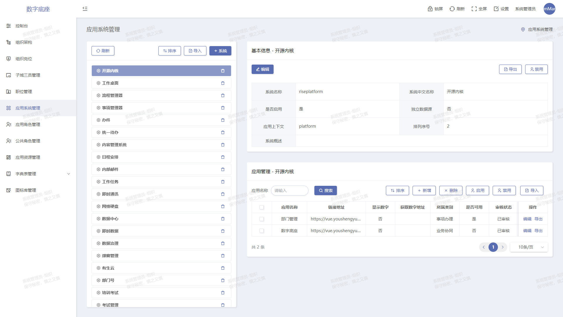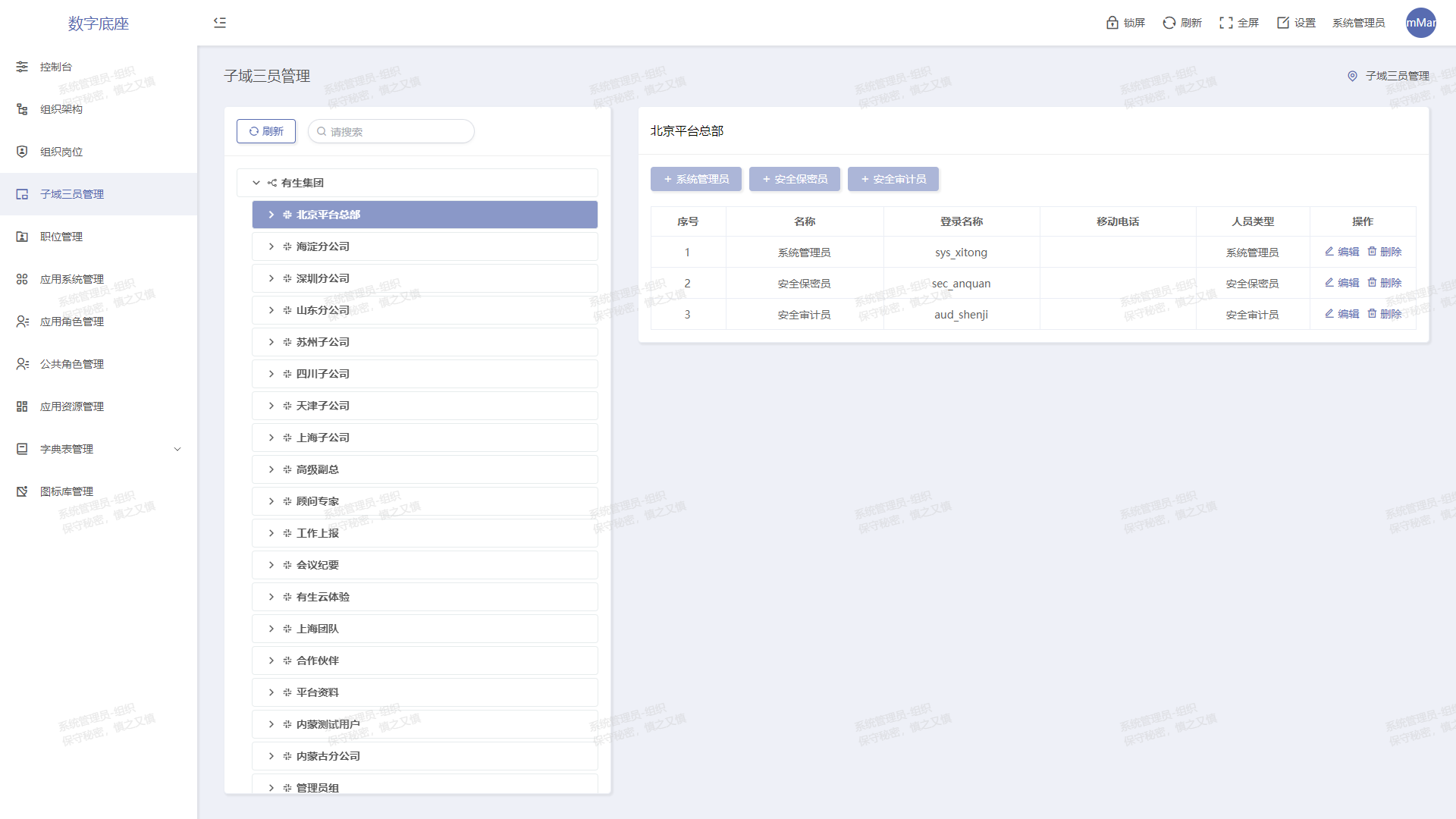 以組織結(jié)構(gòu)和應(yīng)用授權(quán)為主線,內(nèi)置三員管理、崗位制等功能