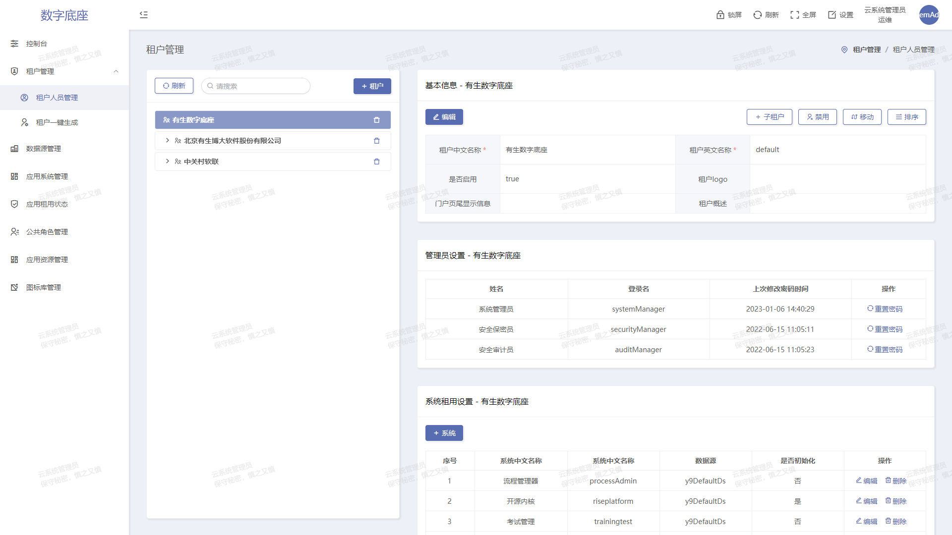 多租戶模式服務(wù)與政府單位和大型國(guó)央企,支持多級(jí)管控,權(quán)限下放。云模式以多租戶為底層,支持線上租賃服務(wù)模式開展自身業(yè)務(wù),高效便捷。
