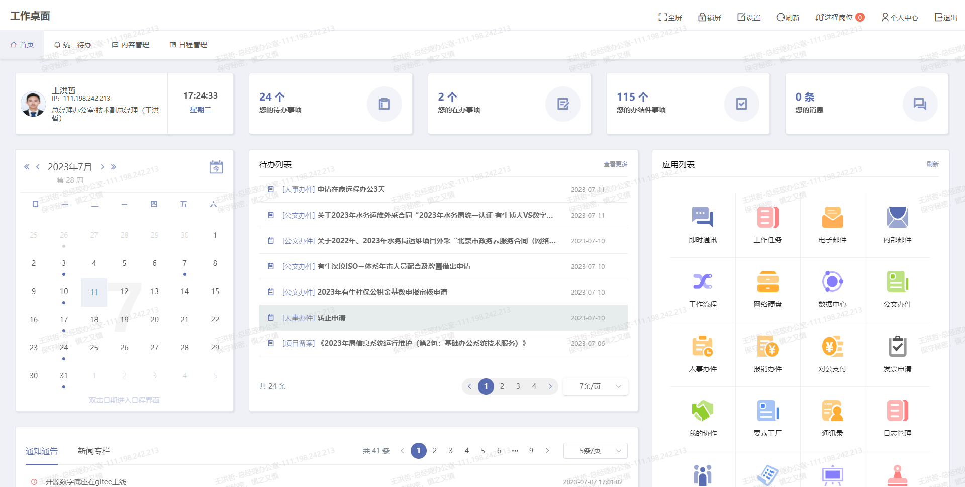 工作桌面、工作流程、即時(shí)通訊、網(wǎng)絡(luò)硬盤、電子郵件五大核心部件